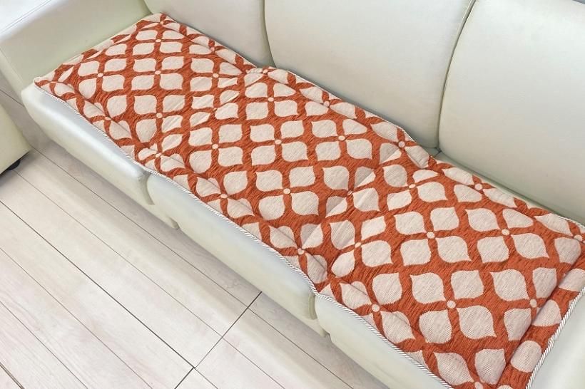 サイズは奥行48センチと大きめで、ソファに置いたり、ベンチに敷いたりして、お部屋にアクセントを与えることもできます。また、手洗い可能なため清潔に保てます。