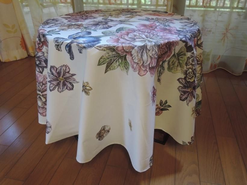 テーブルのサイズより40〜60cm大きなサイズを選んで頂くと、テーブルから20〜30cm垂れ下がり最適なサイズとなります。