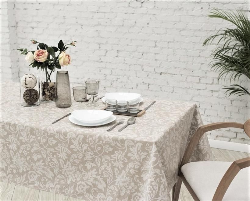 落ち着いたボタニカル柄が特徴のスペイン製のテーブルクロス、ヴェルサ。
