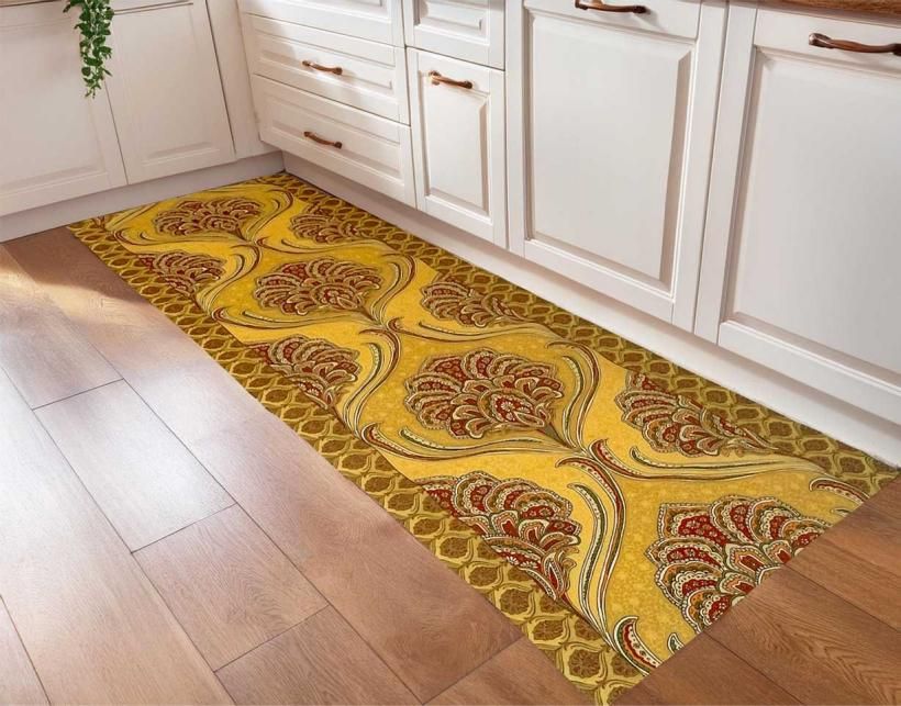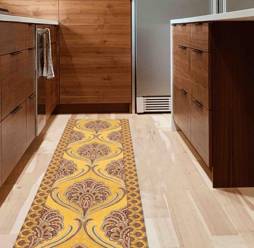 イタリア製のデジタルプリントを施したキッチンマットです。華やかなデザインが特徴です。
