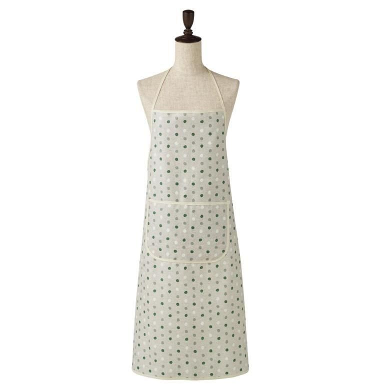 スペイン製落ち着いたボタニカル柄とドット柄のエプロン。
